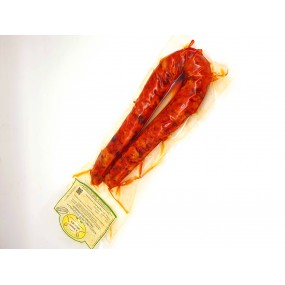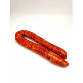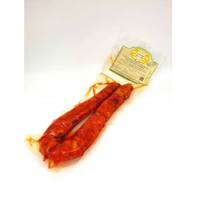 Carne di suino grassa macinata e poi miscelata con peperone piccante macinato in polvere, pepe nero macinato, semi di finocchietto selvatico e sale fino. L’impasto si fa riposare per qualche ora ed in seguito viene insaccato in un budello naturale di suino, che verrà messo a stagionare per un arco di tempo compreso tra i 30 ed i 45 giorni.